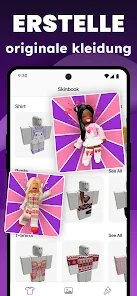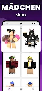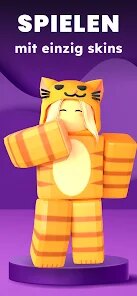 🎨 Umfangreicher Skin-Katalog: Die App bietet Zugriff auf Tausende von hochwertigen Skin-Texturen, die den gesamten Avatar verändern – von metallischen Roboter-Oberflächen über detaillierte Fantasy-Rüstungen bis hin zu lustigen Cartoon-Looks. Jeder Skin wird mit einer klaren Vorschau und oft auch mit alternativen Farbvarianten präsentiert.