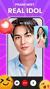 Prank Call - Idol Video Call offers a unique entertainment experience that simulates video calls with celebrities and fictional characters. This app uses advanced AI technology to create realistic-looking video conversations where users can interact with their favorite idols through pre-recorded responses and scripted scenarios. The core functionality revolves around selecting a character and engaging in simulated video calls that mimic real-life interactions, complete with lip-syncing and responsive gestures.