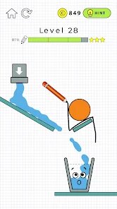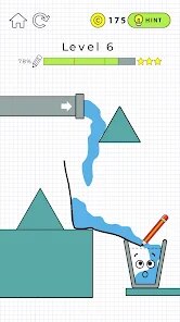 - Satisfying "Liquid" Physics 💧: The star of the show is the water (and other fluids). It flows, splashes, and pools realistically. Watching your carefully drawn channel successfully guide a stream of blue liquid into the waiting glass is incredibly rewarding and is the key satisfying loop of the game.