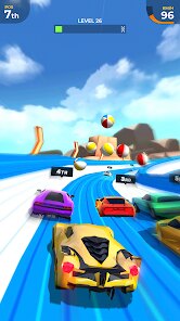 - シンプルで洗練されたビジュアル 👁️: フォトリアルなグラフィックではなく、コースと車両の視認性を最優先したクリアなデザインを採用。画面のちらつきが少なく、長時間プレイしても目が疲れにくい点や、様々な端末で安定したフレームレートを維持できる点が実用的です。