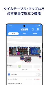📍 マップとナビゲーション: 会場内マップを使用して、ステージやトイレなどの位置を探したり、最適なルートを見つけることが可能です。